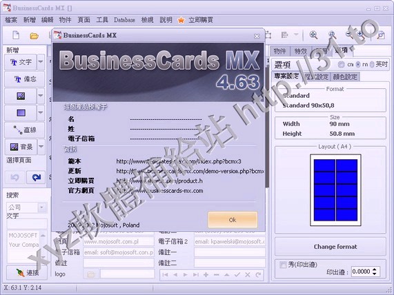 • Mojosoft Software BusinessCards MX v4.01 繁體中文正式版(商業名片製作軟體)