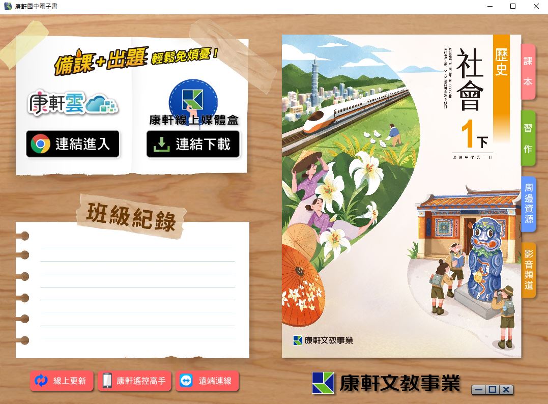 111學年下學期 國中 康軒版 歷史電子書 1年級(含課本、習作含解答、教學資源)教學光碟