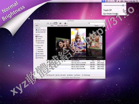 • Screen Shade v1.2 MacOSX 英文正式版(控制你的螢幕亮度軟體)