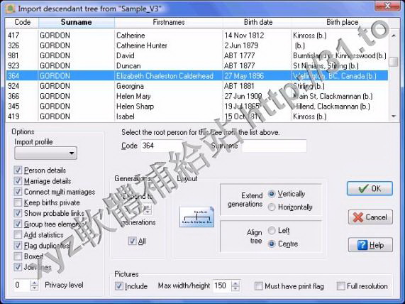 and Kin Pro" databases or from GEDCOM files produced by other genealogy