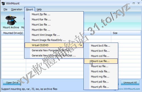 • WinMount v3.3.0524 英文正式版(把 ZIP RAR 等壓縮文件映像為一個虛擬盤符軟體)
